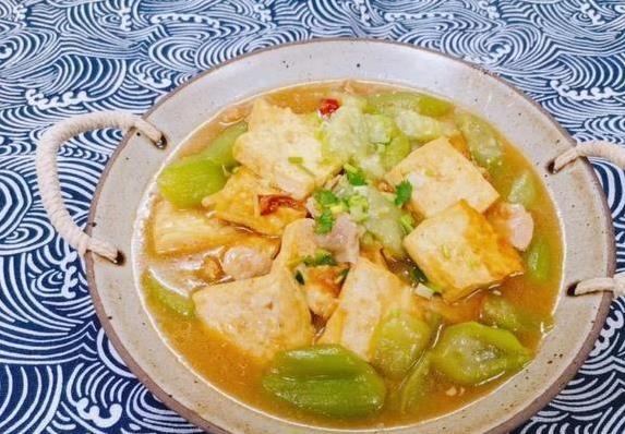 再说豆腐炖丝瓜,这道菜清爽又养胃,夏天吃最舒服。豆腐150克,丝瓜200克,西红柿一个,准备好就开干。热锅放油,油温八成热时把豆腐煎到两面金黄,捞出来备用。锅里再加点油,豆瓣酱、蒜片、姜末一起炒出香味。把煎好的豆腐放回去翻炒几下,加点开水,中火炖一会。加盐和五香粉调味后,把丝瓜和西红柿切块扔进去,炖到汤汁收干就行。丝瓜软嫩,豆腐吸满汤汁,西红柿加点酸甜味,吃起来清爽不腻。